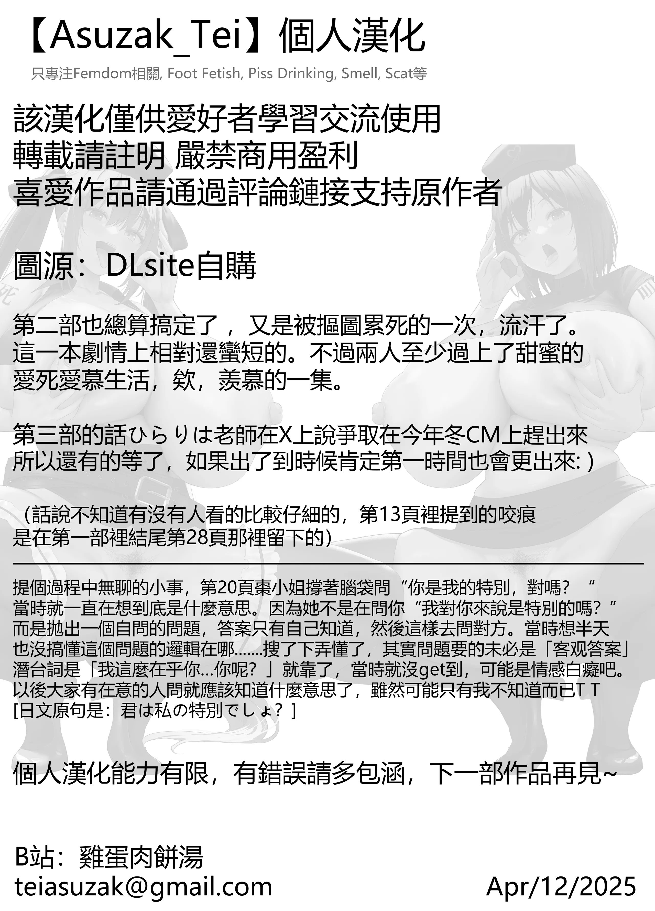 在这本充满刺激与幽默的漫画书《ひらりは_SNSで出会ったS女性とSMプレイをして飼われる話2》中-您将跟随主人公的奇妙旅程-探索SNS上与女S的火热邂逅。故事围绕着SM调教与圈养的主题展开-带您体验一场颠覆传统的成人冒险。每一页都充满了大胆的想象与幽默的对话-让您在紧张与欢笑之间徘徊。无论您是SM文化的资深爱好者-还是初次接触的好奇者-这本漫画都将为您打开一扇新世界的大门。准备好迎接这场视觉与心灵的双重盛宴了吗?快来加入这场充满乐趣与挑战的旅程吧!